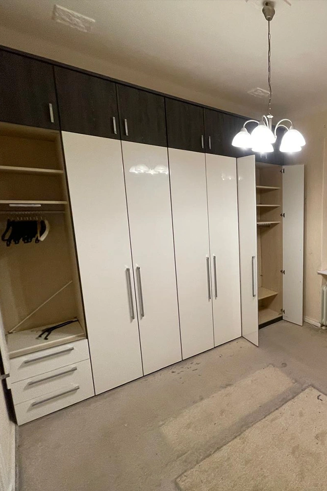 Im Schlafzimmer dominierte eine große Schrankwand fast die komplette Wandfläche. Sie war wie eine Einbaulösung geplant und ließ sich im Ganzen weder bewegen noch durchs Treppenhaus bringen.
