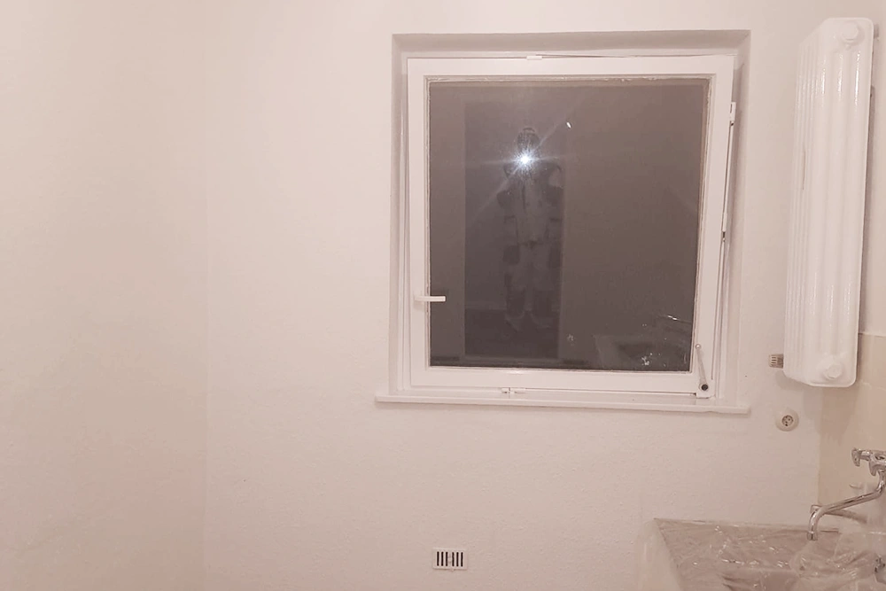 Eine professionelle Renovierung verbindet saubere Vorbereitung mit präzisem Finish: Wir sichern Wege, prüfen Untergründe, bauen Flächen fachgerecht auf und liefern ein deckendes Weiß – inklusive lackierter Heizkörper.