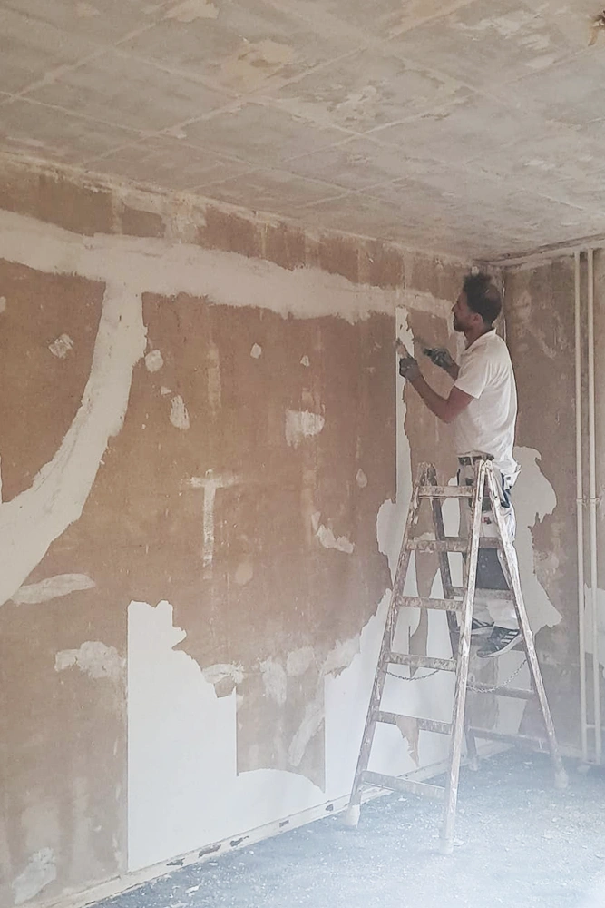 So entstand ein tragfähiger, homogen saugender Untergrund, der Grundierung und deckendem Weißanstrich eine ruhige, fleckenfreie Optik ermöglichte.