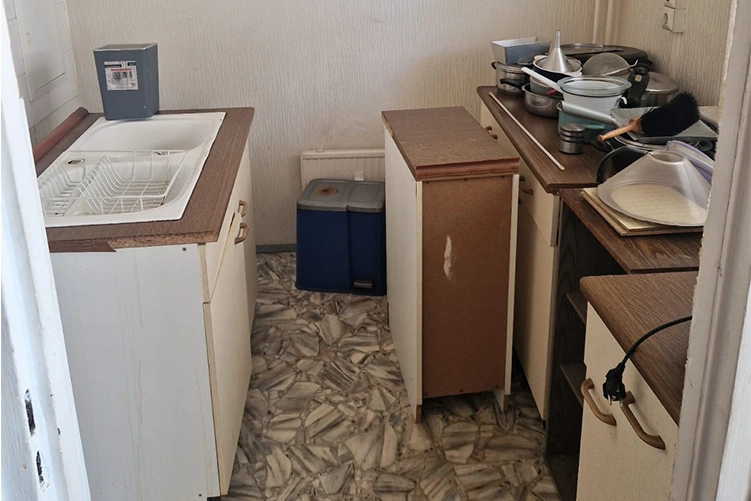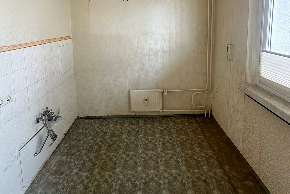 In der kompakten Küche standen ältere Unterschränke und Geräte, die entsogt werden mussten.