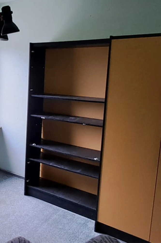 Das Arbeitszimmer war mit schweren Regalen und Schrankelementen ausgestattet, die beim Umzug nicht mehr benötigt wurden. Teilweise standen die Möbel wandbündig oder waren miteinander verbunden – ideal für Stauraum, aber unhandlich beim Abbau.